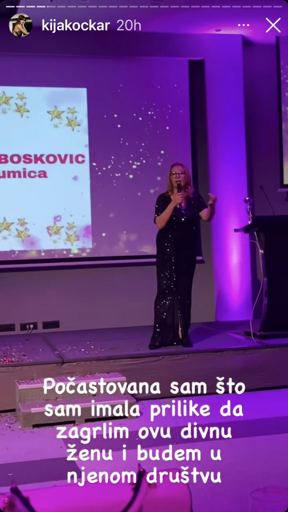 Kija Kockar nakon uručenja nagrade kazala je da je posvećuje svojoj majci Nadici, koja se trenutno nalazi u Zadruzi 4. Takođe, pevačica je na Instagram storiju podelila svoje oduševljenje Tanjom Bošković i napisala: