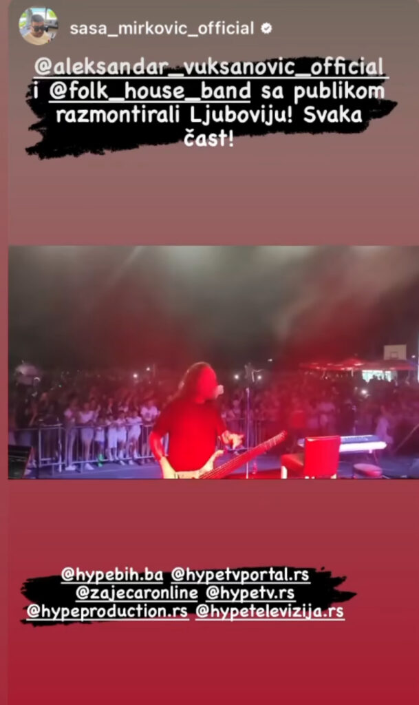 “Aca Lukas i Folk House Band sa publikom razmontirali Ljuboviju! Svaka čast”., napisao je Mirković na spektakularnim snimcima sa lica mesta.