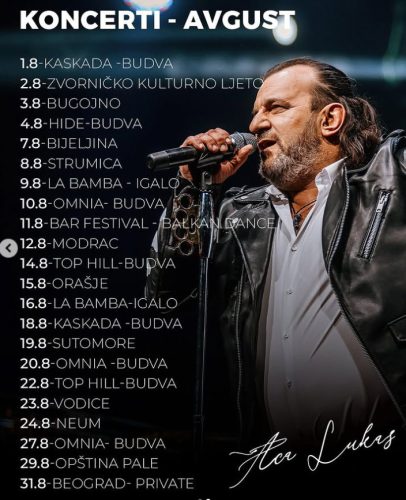 ACA LUKAS U AVGUSTU IMA ČAK 22 NASTUPA!