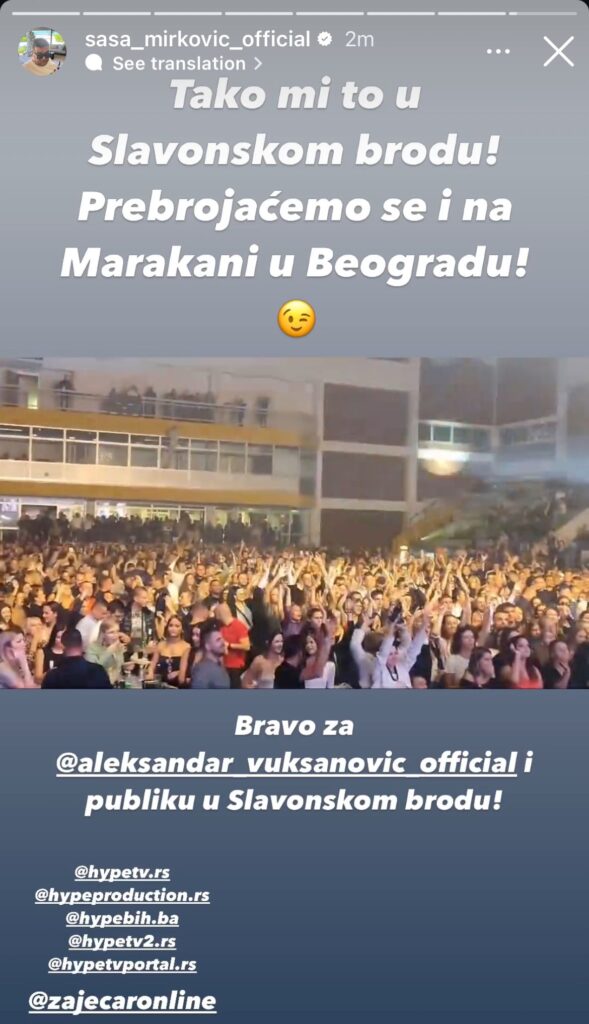 -Tako mi to radimo u Slavonskom brodu! Prebrojaćemo se i na Marakani u Beogradu – napisao je Saša Mirković i podelio momenat sa spektakularnog koncerta.