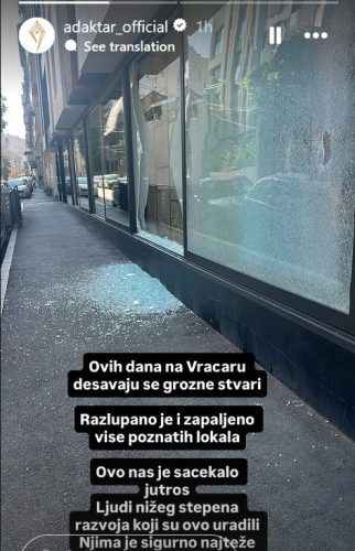 – Vandali su tokom noći razbili staklo na mom lokalu. Policija je obaveštena, istraga je u toku. Na Vračaru se to dešava, moj lokal je još jedan u nizu, jedini je problem što su naša stakla jako skupa, pa je šteta velika – poručio je Adam.