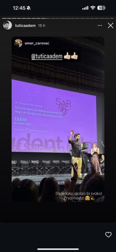 Adem Tutić iz Srbije osvojio „Srce Sarajeva“ za studentski film Tarik