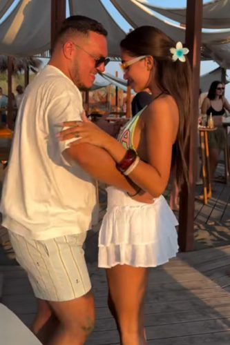 Anđela je bila obučena u kratku belu mini suknju i bikini, dok je Gastoz nosio majicu i šorts.