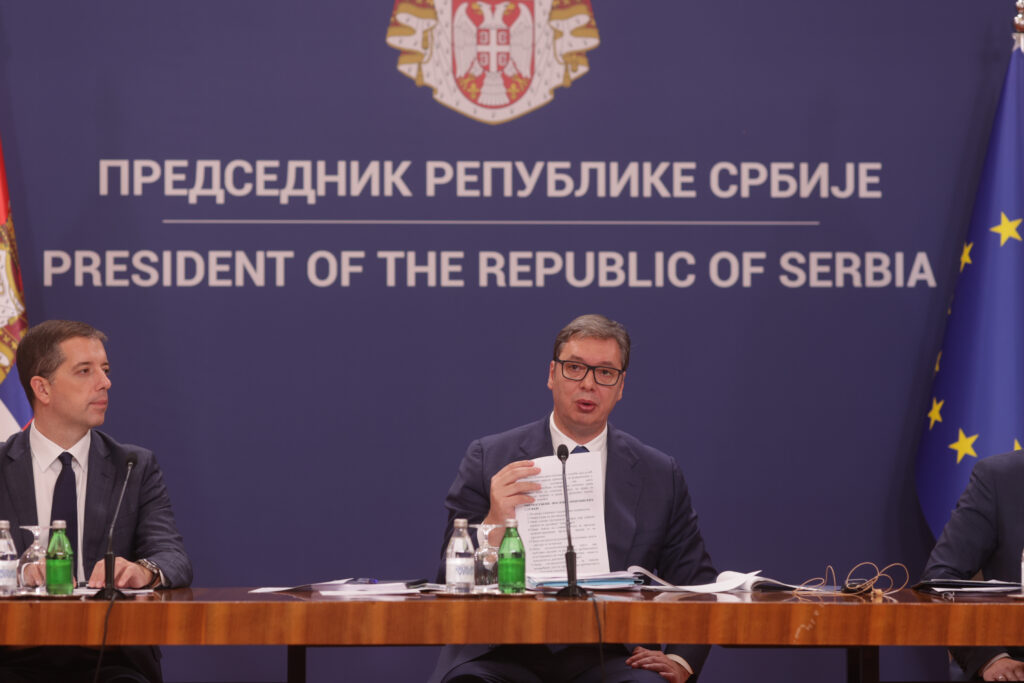 Predsednik Srbije Aleksandar Vučić obratio se iz Palate Srbija povodom niza akcija kosovskih vlasti usmerenih prema srpskom stanovništvu na severu Kosova.
