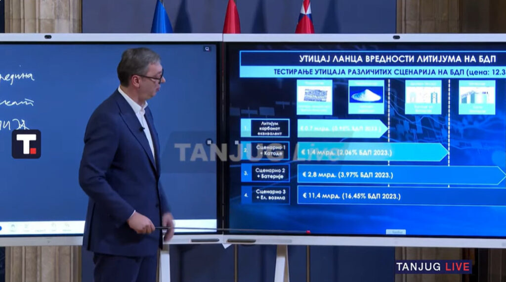 – Možemo li da postignemo ceo lanac, da baterije pravimo u Srbiji, i električne automobile. Šta bi time dobila cela Srbija, a šta bi izgubila. Mi razgovoaramo sa svim najmoćnijim ljudima iz zaštite životne sredine. Dok nam Nemci ne budu garantovali da ćemo imati čiste reke i planince, nećemo ni da pokušavamo ni da počinjemo.