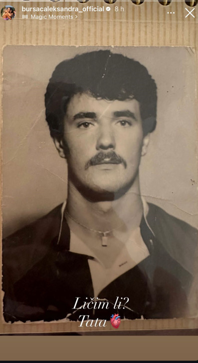 “Ne sećam se oca. Što se tiče te rane mladosti kad sam bila mlađa, ne, ali sad kad sam starija, zrelija, osetila sam da je on tu negde. Jednostavno, za mnoge stvari kad ne postoji niko, tu je on. Kad krenem ovako, on me vraća na put. Ja to osećam i na dan svadbe, koliko god sam bila smetena, znala sam da je prisutan. Da me gleda i da je ponosan””, ispričala je Bursaćeva.
