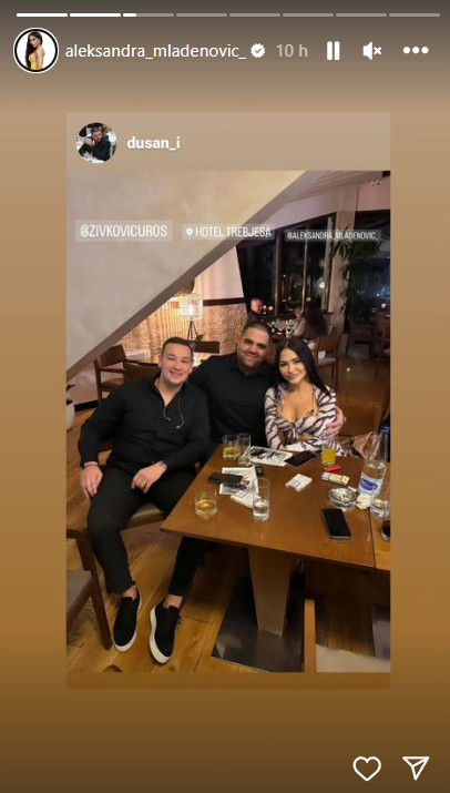 – Predivan je bio tokom veze nismo imali nikakvih problema, samo sam naprasno došla do saznanja i svega i teško mi je da pričam o tome uznemirim nisam spremna. Ne bih pričala, on ima zabranu prilaska neka tako i ostane. Nije obrisao slike ali dobro to je njegova stvar – rekla je Aleksandra Mladenović.