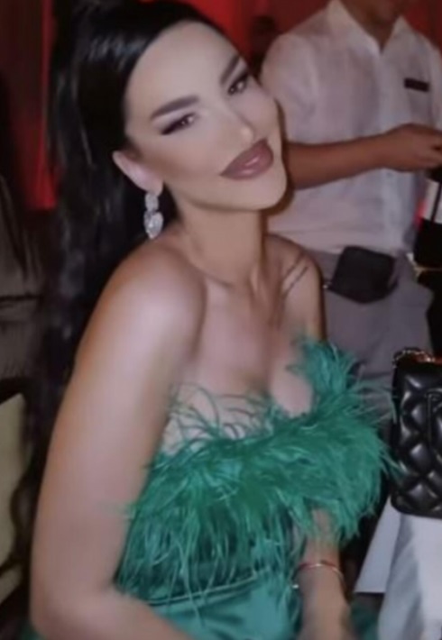 Naime, Aleks je odlučila da se malo opusti i provede vreme sa prijateljicama, ona je obukla zelenu, usku haljinu sa perjem i kosu podigla u visoki rep.