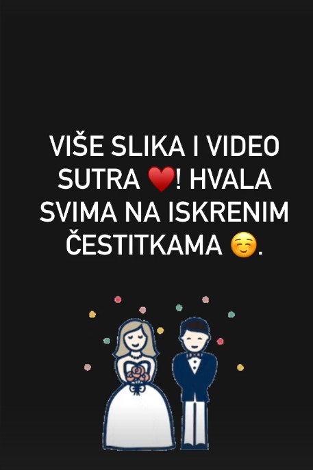 – Više slika i video sutra! Hvala svima na iskrenim čestitkama – poručila je uz sliku mlade i mladoženje. Međutim, na fotografijama nigde ne vidimo pravog mladoženju, pa se nagađa da li je do venčanja zaista došlo ili je ovo samo još jedan potez Subotićeve kojim je želela da izazove pažnju javnosti. Ili možda poruka za Pecu, da je više zaprosi i oženi kako dolikuje!