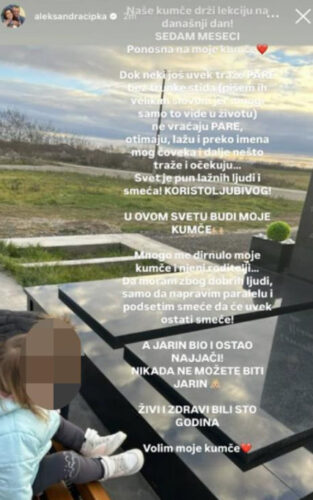 – Naše kumče drži lekciju na današnji dan! Sedam meseci. Ponosna na moje kumče – napisala je Cipka uz fotograju na kojoj sedi