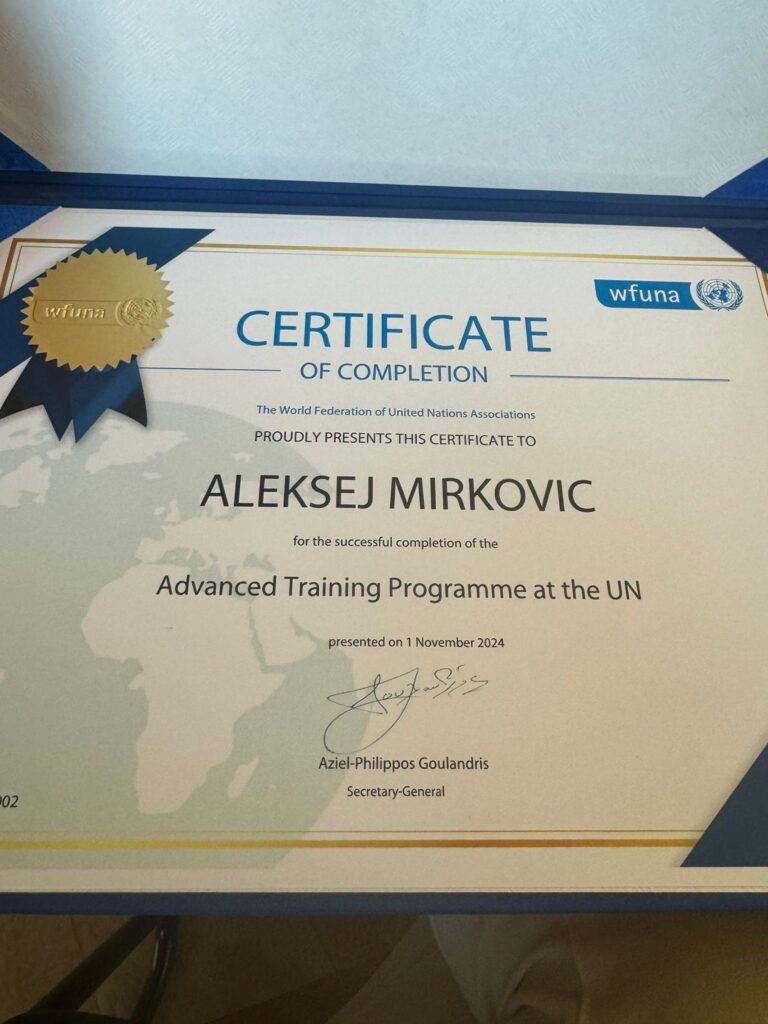 “PONOSAN SAM ŠTO SAM IMAO PRILIKU DA BUDEM PREDSTAVNIK SVOJE DRŽAVE na konferenciji svetske organizacije za trgovinu“ Aleksej Mirković dobio SVETSKO PRIZNANJE