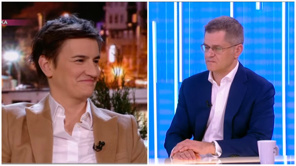 Na snimku koji je prikazan u emisiji, vidi se da tokom rasprave o budžetu 2016. godine tadašnji premijer Aleksandar Vučić u skupštini govori da ga je i Ana Brnabić, tadašnja ministarka za državnu upravu i lokalnu samoupravu, zvala da podrži jednog kandidata. “Ja sam donela i agendu tog sastanka Svetskog ekonomskog foruma, 10. i 11. novembra 2016. u Beču, gde se nepobitno vidi da je gospodin Jeremić bio jedan od učesnika. On vrlo dobro zna da je to istina i ukoliko želi, možemo da idemo i dalje i pokažemo SMS poruke”, rekla je Brnabić.