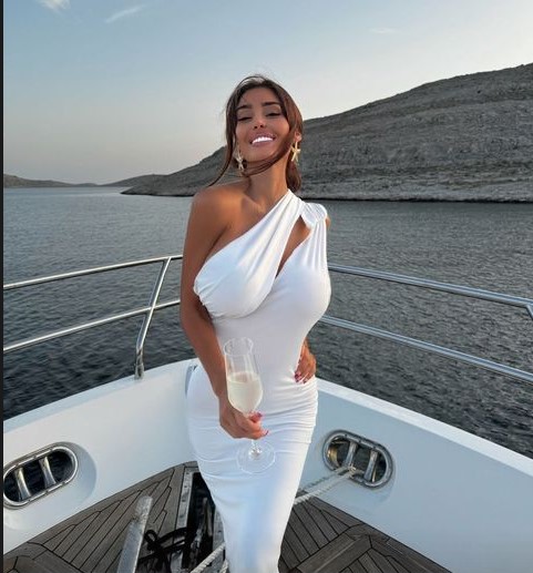 Ona se slikala u beloj uskoj haljini, kako nazdravlja šampanjcem, a kasnije i sa svojim dragim čije lice uvek sakrije.