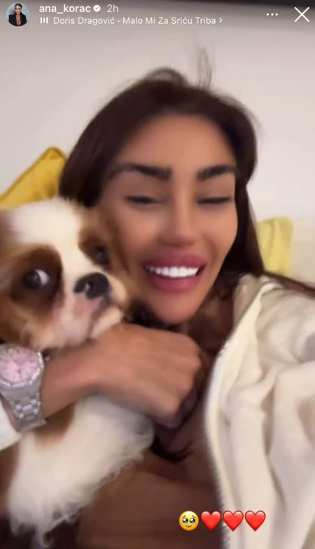 Ana je pozirala sa psom i nije skidala osmeh sa lica. Koraćeva je na stori okačila još nekoliko poklona koje je dobila, a ako je suditi po osmehu na njenom licu, kuca i iznenađenje je bio pun pogodak.
