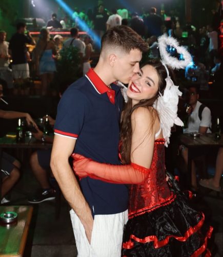 Ana je na Instagramu podelila snimak sa žurke na kojem se vidi kako Janko i ona zavodljivo plešu i uživaju. Pevačica je za ovu priliku odabrala crveno-crnu haljinicu nalik kostimu đavolice, koji je ublažila belim krilima ! Ovaj kostim se može opisati kao spoj paklenog i anđeoskog u jednom izdanju!
