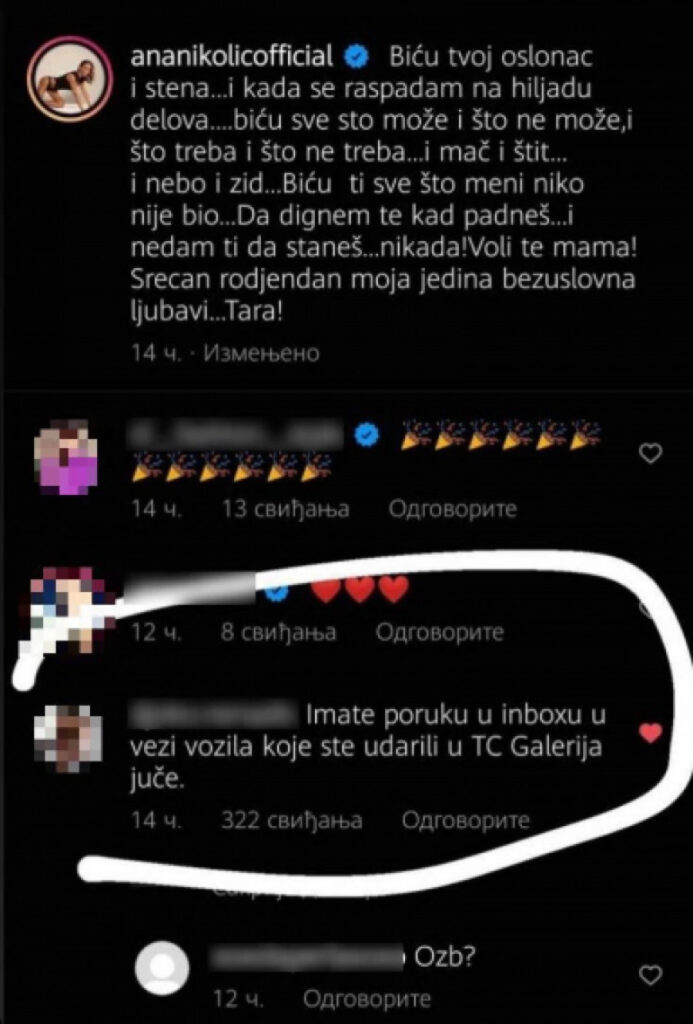 – Imate poruku u inboksu u vezi vozila koje ste udarili u TC Galerija juče – piše u poruci koja je Ani ostavljena na Instagramu, a na koju, makar do sada, nije odgovorila.