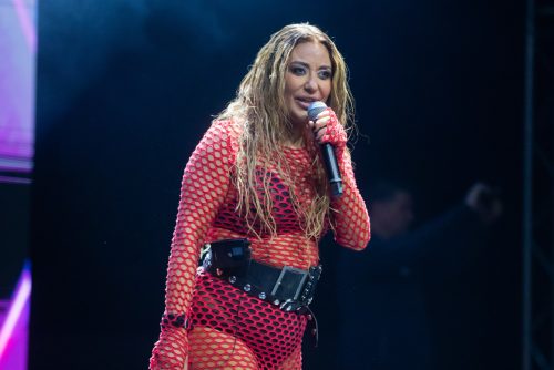 Dok je Rale bio samo u kupaćem, pevačica je bila u crnom topu, crnim pantalonama i ogromnim štiklama u istoj boji. Pored toga nosila je i roze ogrtač.