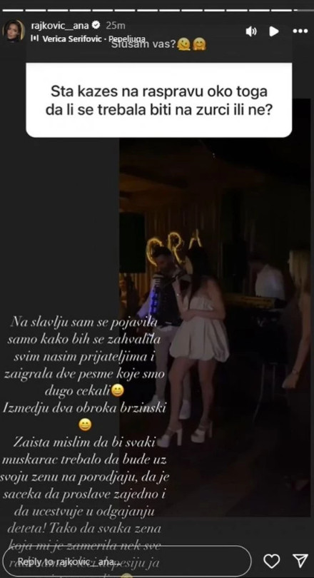 Naime, Ana je izazvala dosta pažnje svojim prisustvom na slavlju povodom dolaska njihove ćerkice Nore, i to samo pet dana nakon porođaja. Mnogi su je kritikovali zbog ovog poteza, ali ona je odlučila da stane u svoju odbranu. Na društvenim mrežama je odgovarala na pitanja svojih pratilaca, a jedno od njih ticalo se u pravo spornog veselja.