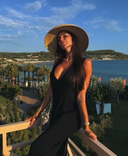 Fotografiju na kojoj nosi istu ogrlicu podelila je i na svom Instagram profilu, gde je pozirala u crnoj haljini sa šeširom na glavi, tokom boravka u Grčkoj.