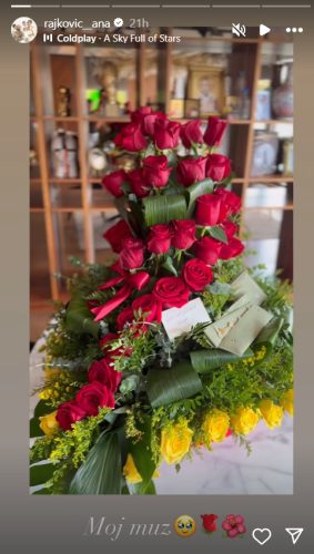 Naime, njen muž, fudbalski golman Predrag Rajković, priredio joj je iznenađenje u vidu prelepog buketa.