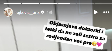 „Objašnjava doktorki i tetki da ne želi sesru za rođendan, već pre“, napisala je Ana.