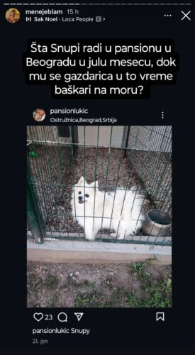 –Šta Snupi radi u pansionu u Beogradu u julu mesecu dok se gazdarica u to vreme baškari na moru? – glasila je objava.