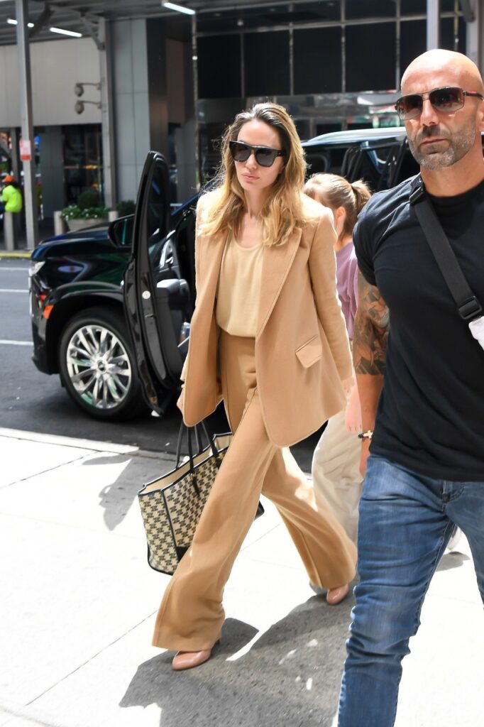 Endži je viđena u tamnobež odelu koje je upotpunila majicom iste boje, a sako i pantalone stajali su joj kao saliveni.