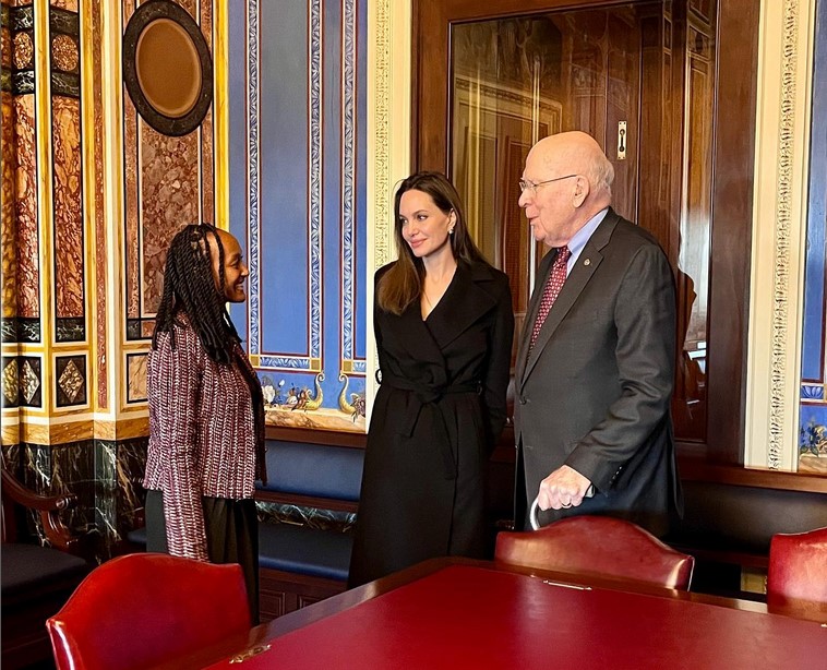 Zvezda filmova „Lara Kroft“ i „Grdana“ bila je izaslanik UNHCR-a od 2001. godine i obavila je više od 60 terenskih misija za agenciju u različitim delovima sveta. Ove godine je posetila Jemen, Burkinu Faso i Ukrajinu.