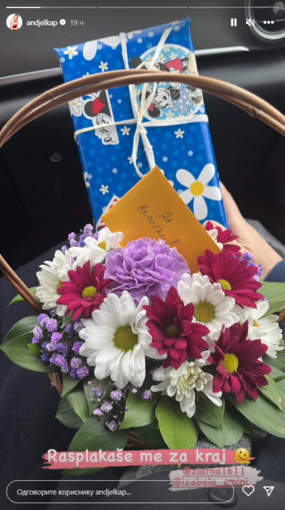 Glumica Anđelka Prpić na svom instagram profilu objavila je poklon od kolega koji je upakovan u plavi ukrasni papir zbog čega su mnogi pomislili da je u pitanju dečak. Uz poklon dobila je i divno cveće.