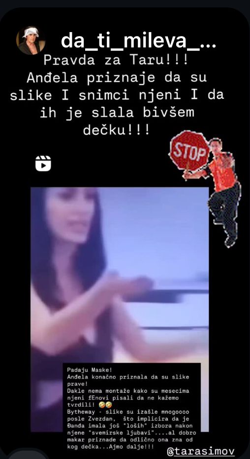 „Anđela priznaje da su snimci i slike njen i da ih je slala bivšem dečku! Pravda za Taru!“, glasila je objava.