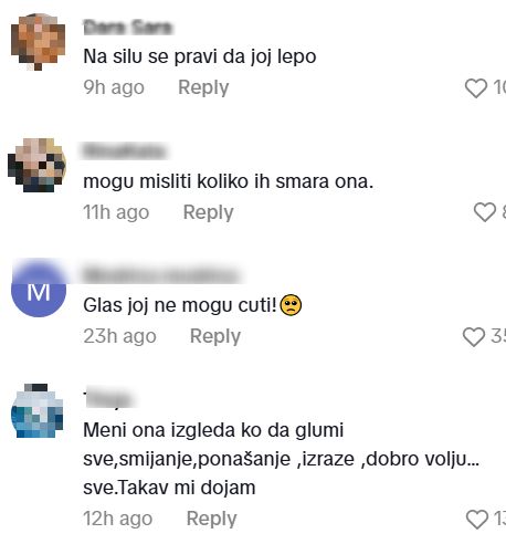 „Na silu se pravi da joj lepo“, „Mogu misliti koliko ih smara ona“, „Meni ona izgleda ko da glumi sve. Smejanje, ponašanje, izraze ,dobru volju… sve. Takav mi dojam“, pisali su na Tiktoku.