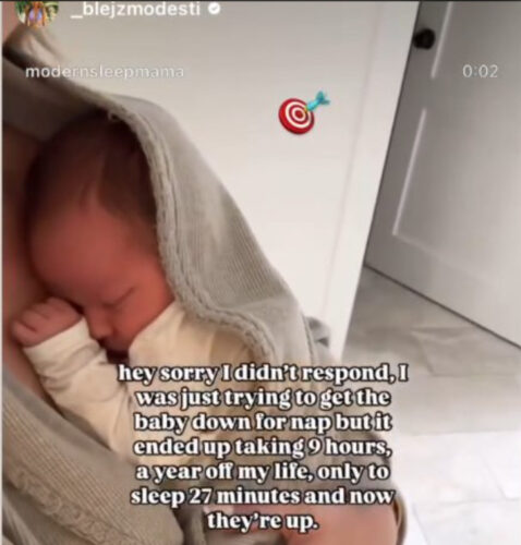 – Hej, izvini što nisam odgovorila, pokušavala sam samo da uspavam bebu, što mi je na kraju oduzelo 9 sati, godinu života, da bi spavala 27 minuta i sad je budna – pisalo je u objavi koju je Anđela podelila i označila Kilibardu.