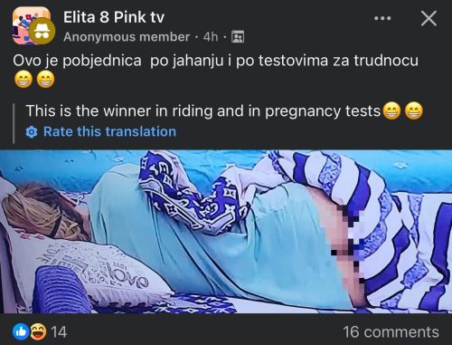 Jedna stranica koja se bavi aktuelnim dešavanjima iz rijalitija objavila je kadar na kojem Ahmićeva spava, a s obzirom na to da joj je jorgan skliznuo, u kadar je dospela njena zadnjica, te je očigledno da nije nosila donji veš.