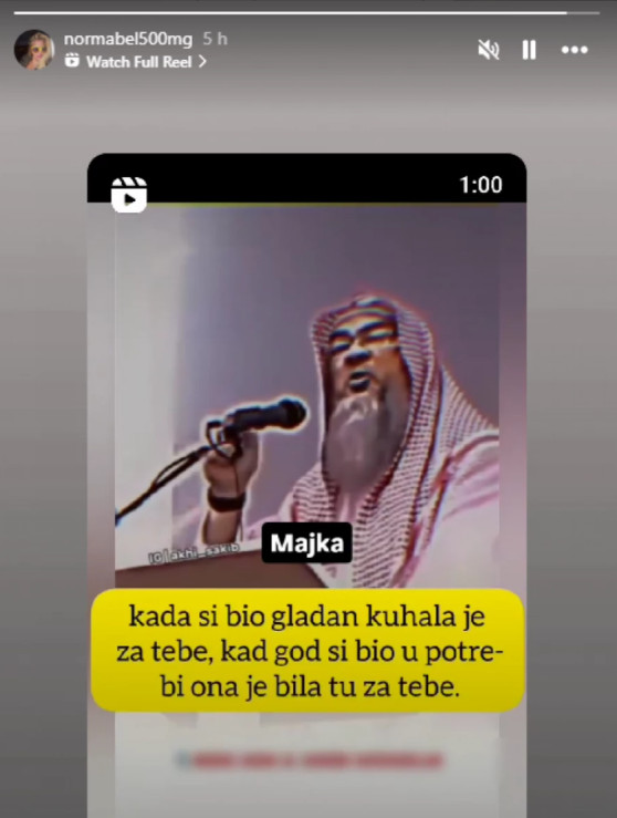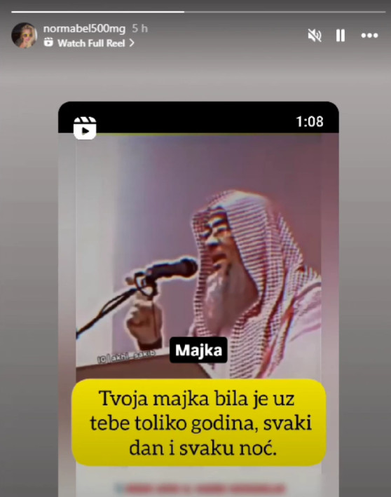 – Tvoja majka bila je uz tebe toliko godina, svaki dan i svaku noć. Kada si imao temperaturu, bila je pored tvoga kreveta. Kada si bio gladan, kuvala je za tebe, kada god si bio u potrebi, ona je bila tu za tebe – bio je citat koji je majka Aneli Ahmić podelila na Instagram storiju.