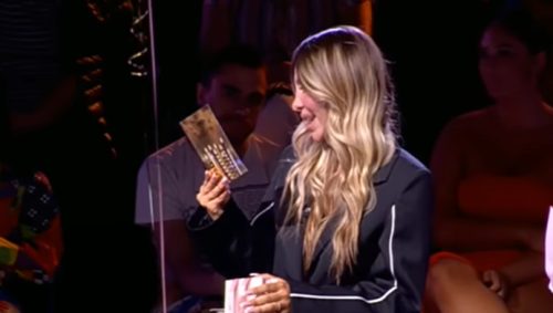 Šok je usledio kada je voditeljka otvorila kutiju i pročitala poruku: „Šaljemo vam poklon 3.000 evra, majke mi“. Kamera je zumirala sadržaj, u kutiji su se nalazili naslagani evri.