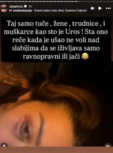 – Taj samo tuče žene, trudnice i muškarce kao što je Uroš. Šta on reče kad je ušao? Ne voli nad slabijima da se iživljava, samo ravnopravni ili jači? – napisala je ona uz fotografiju.