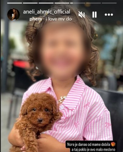 „Nora je danas od mame dobiloa pokpon, a taj pokloon je ovo malo medeno….“, napisala je Aneli, a uz to je stavila i molbu za ideju za ime kuce.