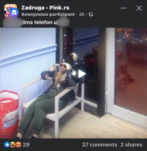 Aneli Ahmić je postala centralna figura u rijalitiju otkako je ušla, privlačeći pažnju medija i fanova. Nedavno je na jednoj fan stranici koja se bavi dešavanjima u rijalitiju objavljena fotografija na kojoj se vidi Aneli dok sedi i nešto drži u ruci.