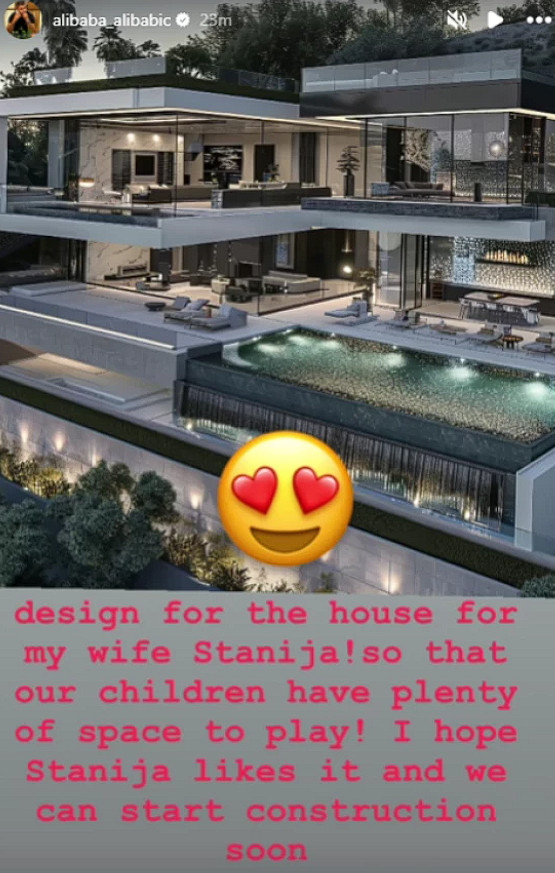 – Dizajn kuće za moju ženu Staniju, da bi naša deca imala mnogo prostora za igru. Nadam se da se Staniji sviđa i da možemo da krenemo konstrukciju uskoro – napisao je Durdžić putem svog storija na Instagramu.