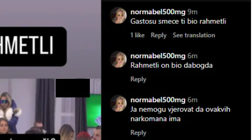 Na jednoj stranici na Instagramu, koja je objavila kratak video-segment iz rijalitija, ostavila je nekoliko komentara na Gastozov račun.