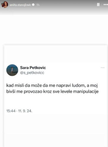 – Kad misli da može da me napravi ludom, a moj bivši me provozao kroz sve levele manipulacije – poručila je Anita putem Instagrama, a Rankoviću se ovo zasigurno nimalo neće dopasti.