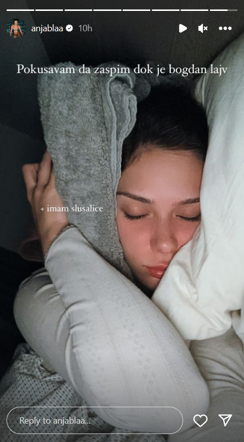 “Pokušavam da zaspim dok je Bogdan lajv + imam slušalice“, napisala je Anja na svom storiju.