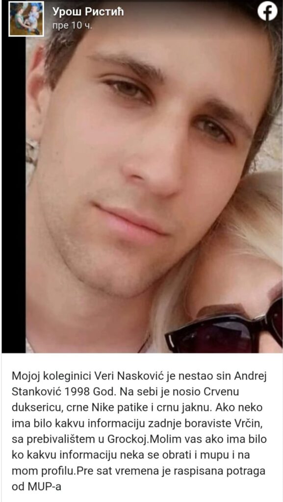 – Ljudi, imam molbu za sve vas. Nestalo je dete majke Verice Vere N, Andrej S, 1998.