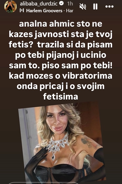 -Analna Ahmić, što ne kažeš javnosti šta je tvoj fetiš? Tražila si da p**am po tebi pijanoj i učinio sam to. Pi**o sam po tebi! Kad možeš o vibratorima, onda pričaj i o svojim fetišima – osuo je paljbu Asmin i sledećom storiju.