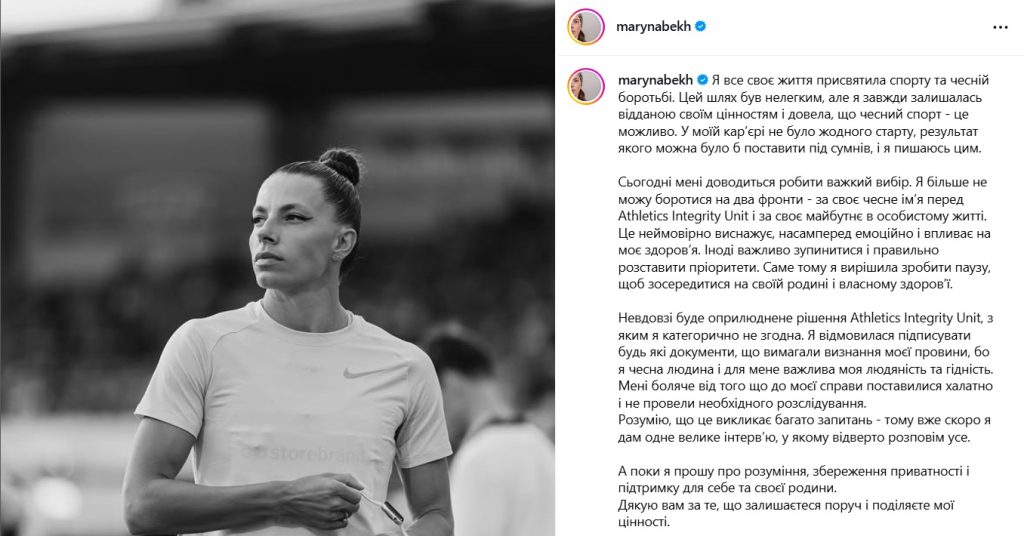 Suočavam se sa teškim odlukama. Više ne mogu da se borim na dva fronta – za svoje pošteno ime pred Jedinicom za integritet atletike i za svoju budućnost u privatnom životu. To je izuzetno iscrpljujuće, prvo emotivno, a potom i po moje zdravlje. Ponekad je važno napraviti pauzu i postaviti prioritete. Zato sam odlučila da napravim pauzu kako bih se posvetila porodici i sopstvenom zdravlju.
