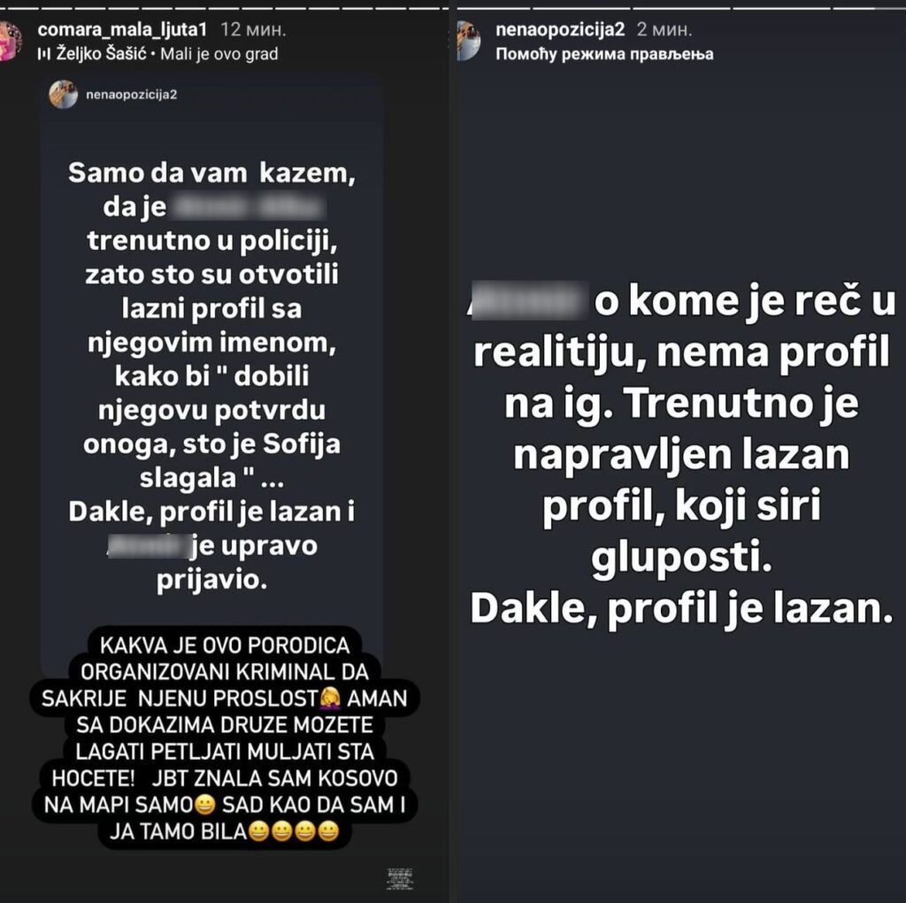 – Samo da vam kažem da je A.A. trenutno u policiji. Zato što su otvorili lažni profil sa njegovim imenom, kako bi dobili njegovu potvrdu onoga što je Sofija slagala. Dakle profil je lažan i A. je upravo prijavio -glasilo je opis na društvenoj mreži.