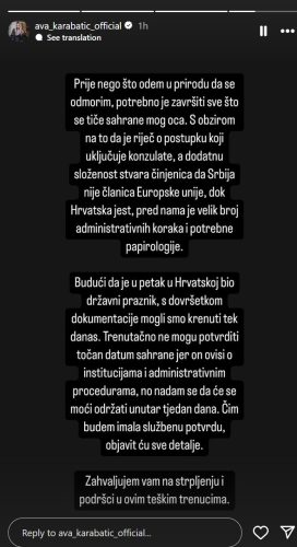 Otac starlete Ave Karabatić preminuo je u Beogradu, a ona na društvenim mrežama deli razne objave – od traženja finansijske pomoći, do detalja u kakvom je stanju.