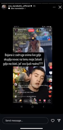 Naime, Ava se oglasila putem društvenih mreža zbog bivše rijaliti učesnice Bojane Pavlović, koju optužuje da na TikToku organizuje lajv prenose i navodno prikuplja novac koristeći se njenom porodičnom tragedijom.