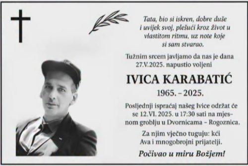 – Tata, bio si iskren, dobre duše i uvek svoj, plešući kroz život u vlastitom ritmu, uz note koji si sam stvarao. Tužnim srcem javljamo da nas je dana 27. maja 2025. u 17.30 napustio voljeni Ivica Karabatić – pisalo je na umrlici.