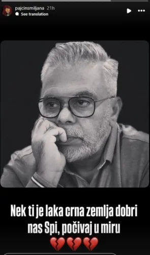 – Neka ti je laka crna zemlja, dobri naš Spi, počivaj u miru – napisala je uz emotikone slomljenog srca.